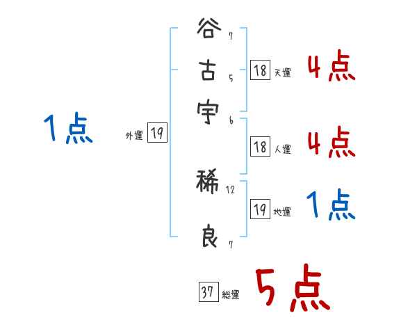 谷古宇稀良さんの画数の鑑定結果