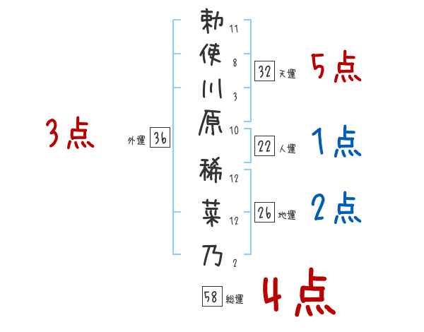 勅使川原稀菜乃さんの画数の鑑定結果