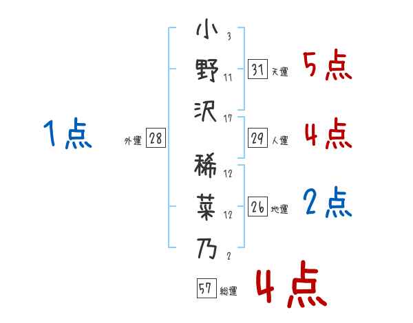 総運![]() | 小野沢稀菜乃さんの総運は57画の4つ星!向上心があり人望がある。地位を得る。 あなたの人生を表す1番重要な運勢です。生涯を通じて影響する総合運となり、主に50歳以降の晩年期に影響を及ぼします。 |