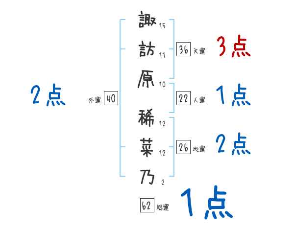 諏訪原稀菜乃さんの画数の鑑定結果