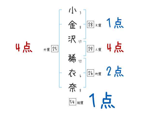小金沢稀衣奈さんの画数の鑑定結果