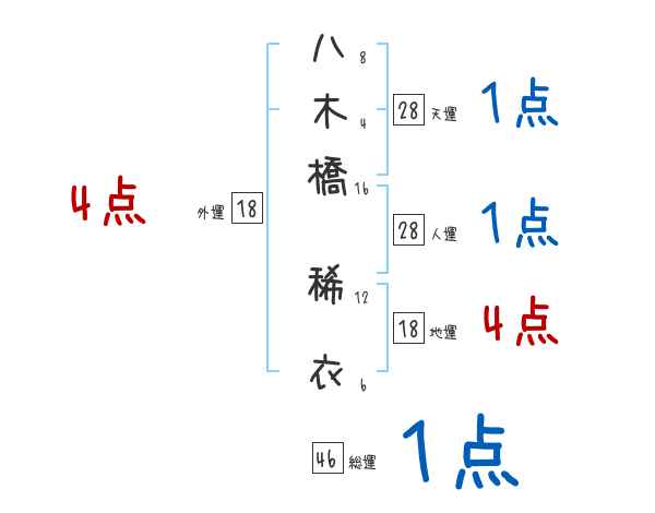 八木橋稀衣さんの画数の鑑定結果