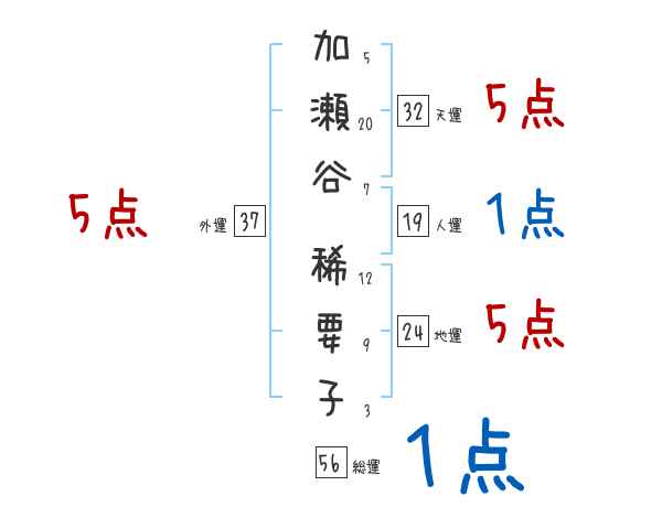 加瀬谷稀要子さんの画数の鑑定結果
