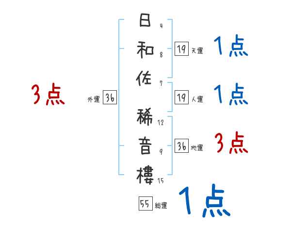 日和佐稀音樓さんの画数の鑑定結果