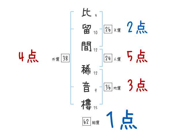 比留間稀音樓さんの画数の鑑定結果