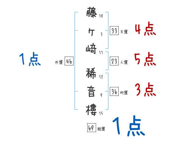 藤ヶ﨑稀音樓さんの画数の鑑定結果