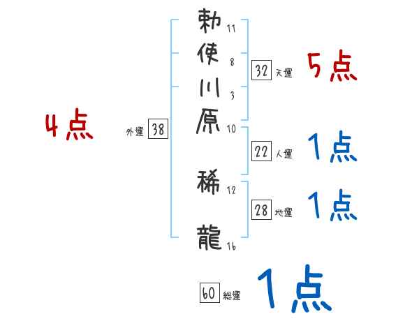 勅使川原稀龍さんの画数の鑑定結果
