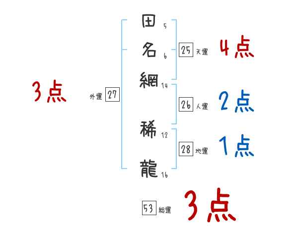 田名網稀龍さんの画数の鑑定結果