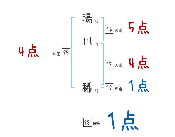 湯川稀さんの画数の鑑定結果