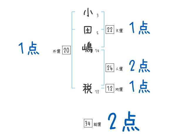 小田嶋税さんの画数の鑑定結果