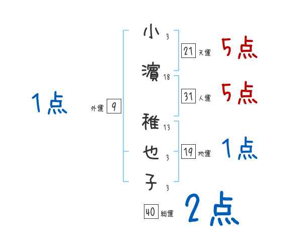 天運![]() | 小濵稚也子さんの天運は21画の5つ星!統率力がある。独立し成功する。名誉を手に入れる。 家系が持つ宿命的な運勢を表します。祖先から受け継いだ苗字ですので自分の力が及びません。家柄を象徴します。 |