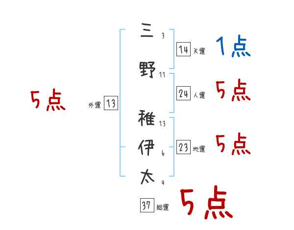三野稚伊太さんの画数の鑑定結果