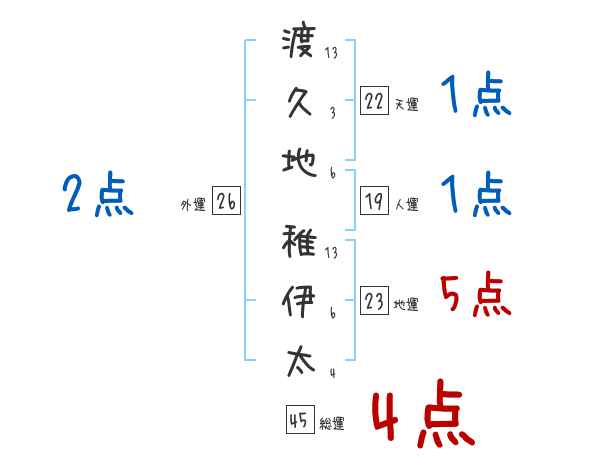 渡久地稚伊太さんの画数の鑑定結果