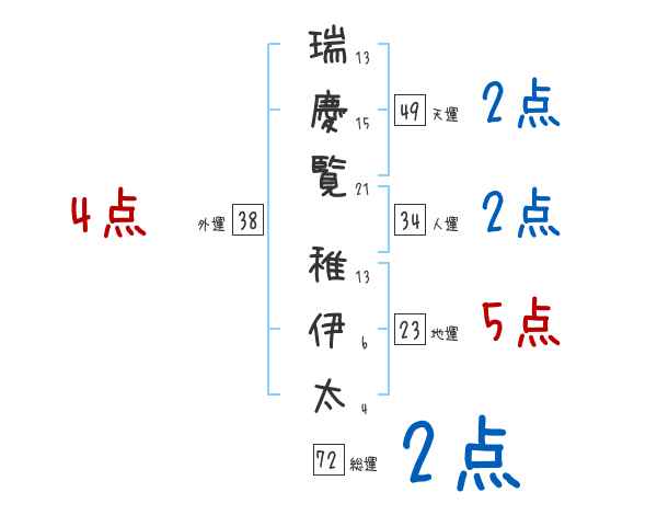 瑞慶覧稚伊太さんの画数の鑑定結果