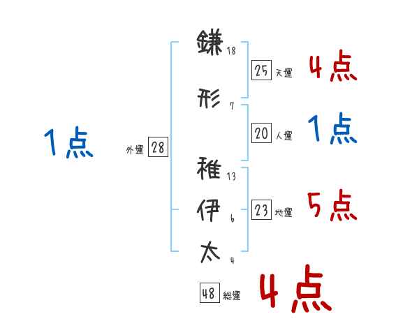 鎌形稚伊太さんの画数の鑑定結果