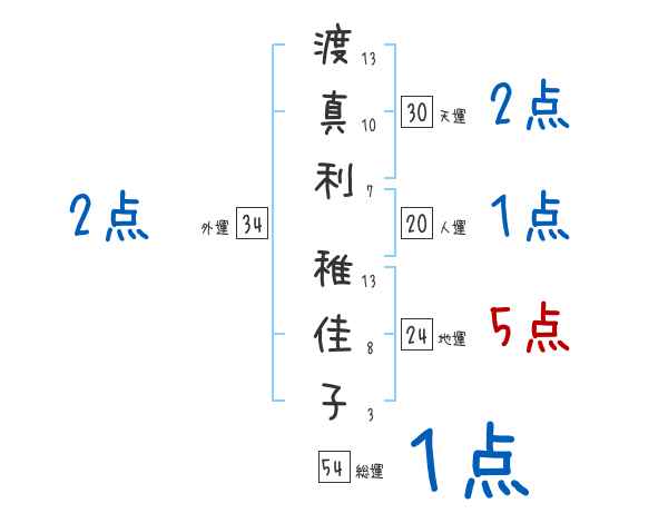 地運![]() | 渡真利稚佳子さんの地運は24画の5つ星!家庭運が良く順調な人生。金運にも恵まれる。 個性を表す基礎的な運勢です。性格形成や対人関係、行動力など家庭環境に影響されます。主に誕生してから20歳くらいまでの若年期の運勢を表します。 |