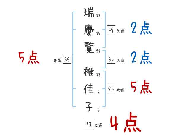瑞慶覧稚佳子さんの画数の鑑定結果