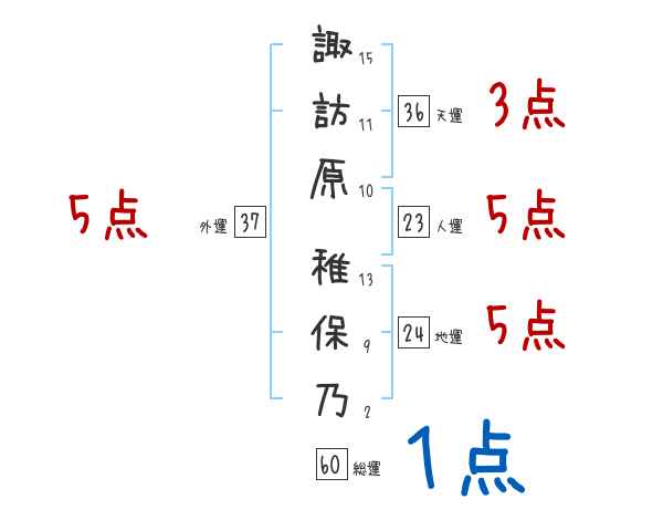 諏訪原稚保乃さんの画数の鑑定結果