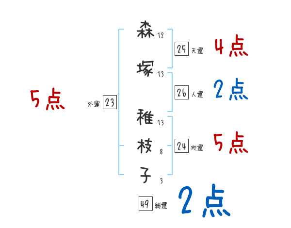 森塚稚枝子さんの画数の鑑定結果
