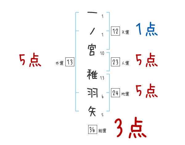 一ノ宮稚羽矢さんの画数の鑑定結果