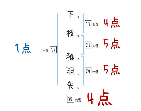 下枝稚羽矢さんの画数の鑑定結果