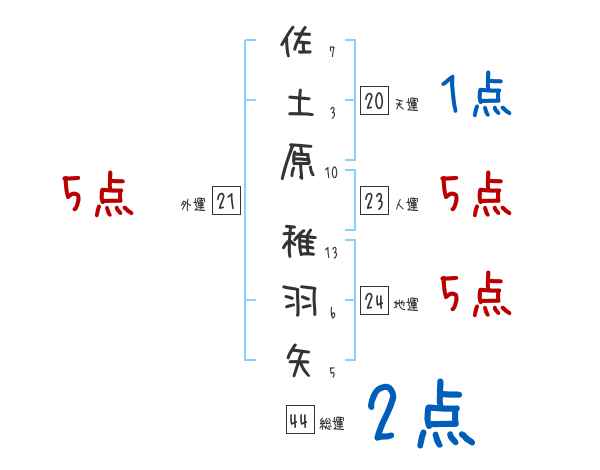 佐土原稚羽矢さんの画数の鑑定結果