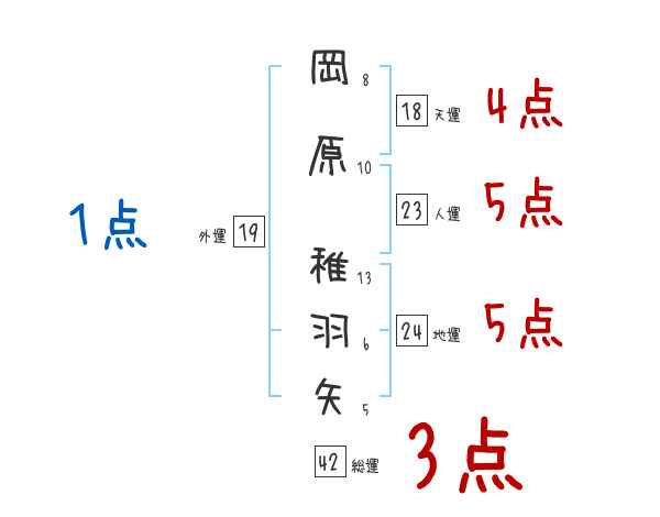 岡原稚羽矢さんの画数の鑑定結果
