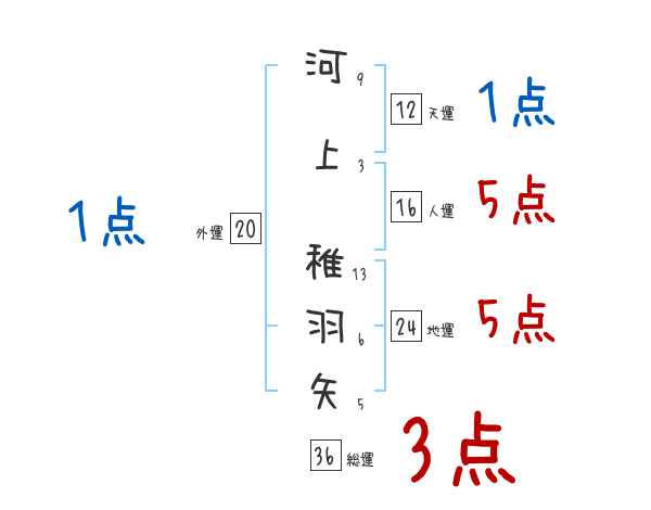 総運![]() | 河上稚羽矢さんの総運は36画の3つ星!先見性が豊かです。多少神経質で苦労することも。 あなたの人生を表す1番重要な運勢です。生涯を通じて影響する総合運となり、主に50歳以降の晩年期に影響を及ぼします。 |