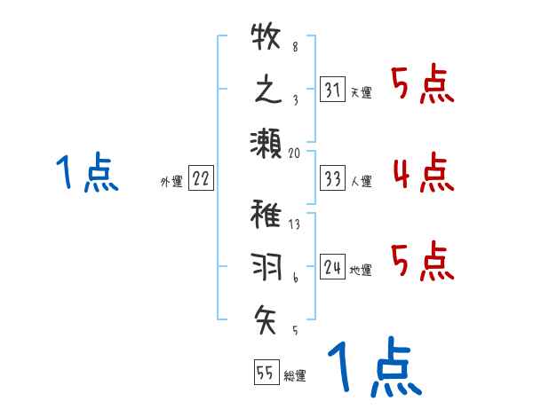 牧之瀬稚羽矢さんの画数の鑑定結果