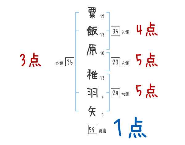 外運![]() | 粟飯原稚羽矢さんの外運は36画の3つ星!先見性が豊かです。多少神経質で苦労することも。 生活面を象徴する運勢です。外部から受ける影響力を表し、結婚運、家庭運や職場、環境への順応性を表します。 |