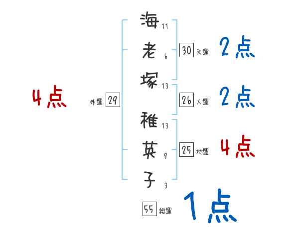 海老塚稚英子さんの画数の鑑定結果