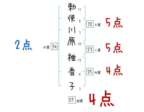 勅使川原稚香子さんの画数の鑑定結果