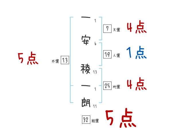 一安稜一朗さんの画数の鑑定結果