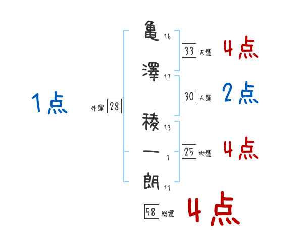 亀澤稜一朗さんの画数の鑑定結果
