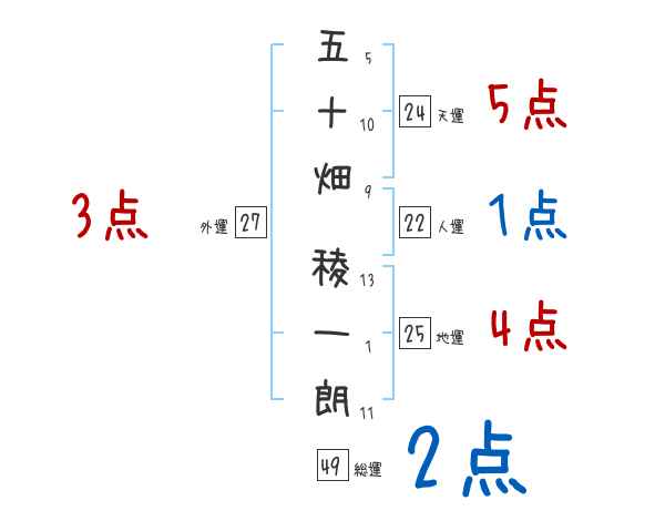 五十畑稜一朗さんの画数の鑑定結果