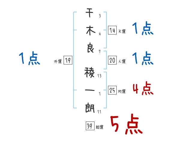千木良稜一朗さんの画数の鑑定結果