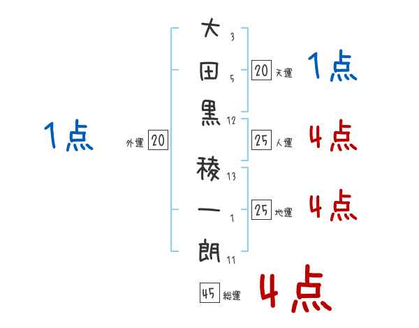 大田黒稜一朗さんの画数の鑑定結果
