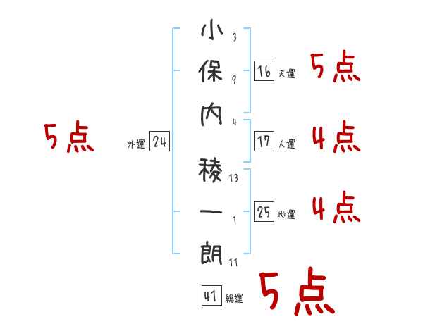 小保内稜一朗さんの画数の鑑定結果