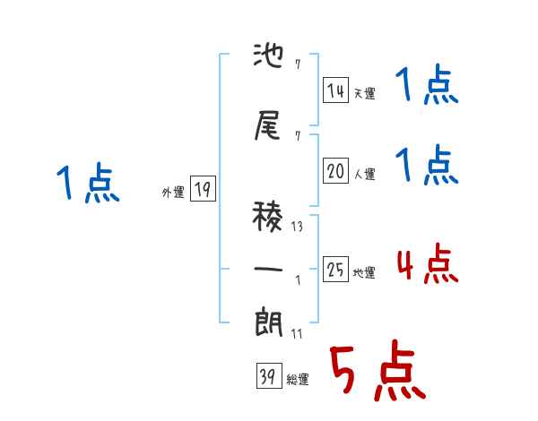天運![]() | 池尾稜一朗さんの天運は14画の1つ星!人に対して優しいがストレスを溜め込みがち。人間関係のトラブルを避けるよう気をつけましょう。 家系が持つ宿命的な運勢を表します。祖先から受け継いだ苗字ですので自分の力が及びません。家柄を象徴します。 |