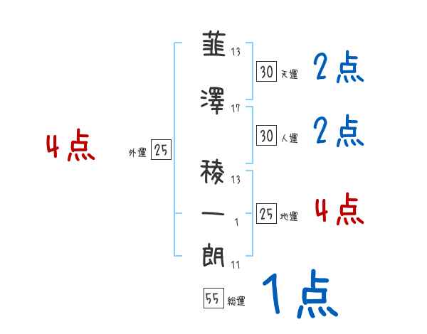 韮澤稜一朗さんの画数の鑑定結果