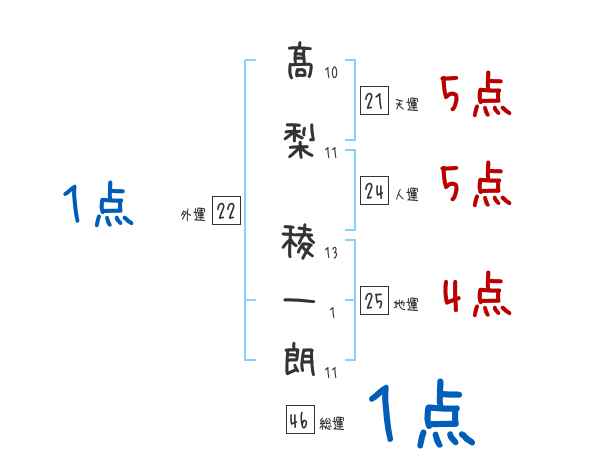 天運![]() | 髙梨稜一朗さんの天運は21画の5つ星!統率力がある。独立し成功する。名誉を手に入れる。 家系が持つ宿命的な運勢を表します。祖先から受け継いだ苗字ですので自分の力が及びません。家柄を象徴します。 |