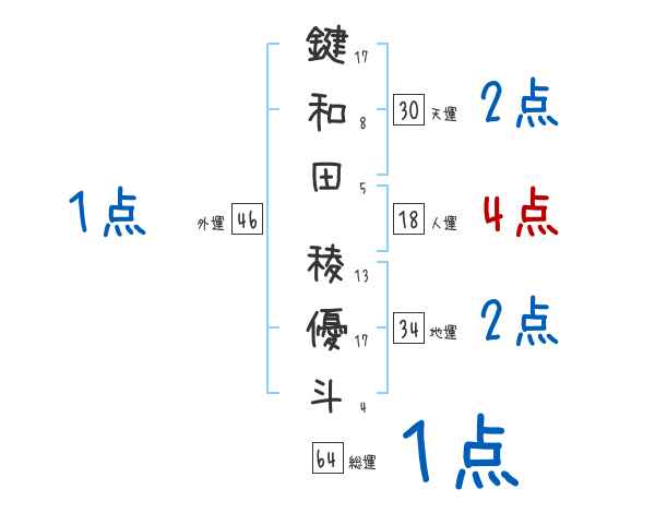 鍵和田稜優斗さんの画数の鑑定結果