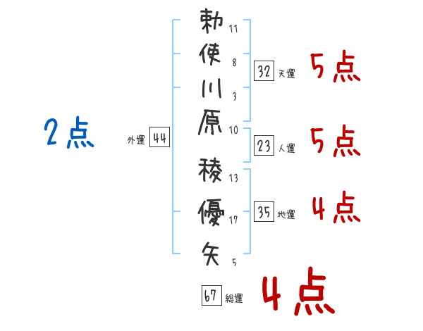 勅使川原稜優矢さんの画数の鑑定結果