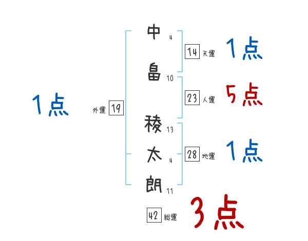 外運![]() | 中畠稜太朗さんの外運は19画の1つ星!優れた才能を持ちますが、協調性が足りないことも。周りの人と協力する事を意識しましょう。 生活面を象徴する運勢です。外部から受ける影響力を表し、結婚運、家庭運や職場、環境への順応性を表します。 |