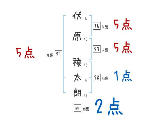 総運![]() | 伏原稜太朗さんの総運は44画の2つ星!誠実で慎重な性格。物事を考えすぎないように注意しましょう。 あなたの人生を表す1番重要な運勢です。生涯を通じて影響する総合運となり、主に50歳以降の晩年期に影響を及ぼします。 |