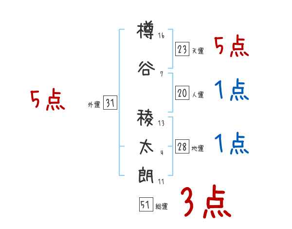 樽谷稜太朗さんの画数の鑑定結果