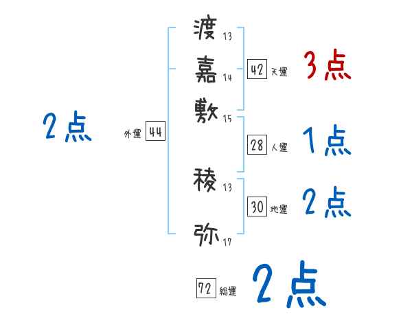 渡嘉敷稜弥さんの画数の鑑定結果