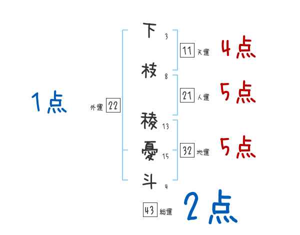下枝稜憂斗さんの画数の鑑定結果