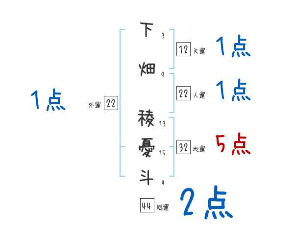 下畑稜憂斗さんの画数の鑑定結果