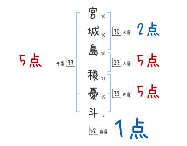 宮城島稜憂斗さんの画数の鑑定結果